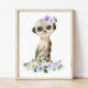 Poster Suricate, Safari, Fleurs Violettes, Mixte