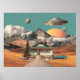 Poster Surreal UFO Over Rustic House