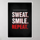 Pump up your motivation with this fitness typography poster. ‘Sweat. Smile. Repeat.’ in bold style — great for gyms, home workout rooms or studios. Multiple sizes and materials available.