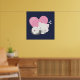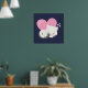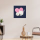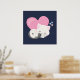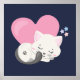 Une affiche avec une adorable illustration graphique. Un chaton blanc avec une jolie image empreinte de patte sur sa fourrure. Dormir tranquillement. Un grand coeur rose derrière elle et quelques petites étoiles aussi. Arrière - plan bleu foncé.