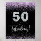 50 AND FABULOUS - signe de fête d'anniversaire avec un design de confettis en parties scintillant noire, violet et argent.