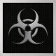 Cette conception unique présente le symbole de danger biologique pour les substances biologiques dangereuses et dangereuses. Le symbole international de l'avertissement se compose de trois cercles ouverts qui se croisent et d'un quatrième cercle placé derrière eux. Les textures métalliques et un arrière - plan de maille d'acier donnent au motif un look industriel fort.