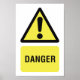 Un signe jaune de danger avec le mot et un point d'exclamation. Ce design semble vraiment efficace sur cette affiche