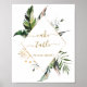 Cette enseigne mariage de table à gâteau présente un feuillage tropical vert aquarelle, des feuilles de palmiers, des feuilles de bananes et des feuilles en faux or avec un cadre en faux diamant d'or. Il est parfait pour un mariage tropical, plage ou destination.