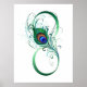 Le symbole de l'infinity with a bright, green, artistic peacock feather on a white background. Tattoo style.