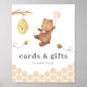 Un ours doux tenant un ballon crème, avec des abeilles, une ruche et un nid d'abeille autour d'eux. Parfait pour votre première fête d'abeilles sur le thème de l'ours !