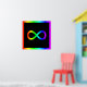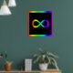 Simple dégradé arc-en-ciel couleur infinité symbole mathématique sur une affiche carré noir avec des accents de bordure arc-en-ciel ombre. Mise à jour le : 22/09/15