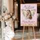 Créez un bel et élégant hommage avec ce signe de bienvenue funéraire. Doté d'ailes d'ange en parties scintillant dorée, dressées contre un arrière - plan rose doux, parfait pour un hommage mémorial serein et sincère. Personnalisation facile : Personnalisez votre panneau d'accueil directement sur Zazzle. Modifier le texte et ajouter des photos Remarque : Pour obtenir le même effet que l'image exemple avec un arrière - plan clair et un effet flou en bas, vous devrez vous assurer que votre photo téléchargée est ajustée en conséquence. Il est de votre responsabilité de faire ajuster l'image avant d'acheter cette annonce. Caractéristiques : Image de haute qualité Entièrement personnalisable sur Zazzle pour une personnalisation facile. Option pour imprimer directement avec Zazzle Créez un signe de bienvenue chaleureux qui rend hommage à la mémoire de votre être cher.