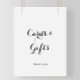 Cette carte calligraphie moderne et le signe cadeau sont parfaits pour une mariage ou une douche nuptiale rustique. Le design sobre et élégant présente une typographie de script classique et sophistiquée en noir et blanc. Faites la ligne de texte au bas du panneau vous-même en incluant la date, les noms de la mariée et du marié ou un message court comme "Merci". Ce signe peut compléter un mariage, un événement ou une fête.