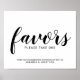 Signe moderne Script Wedding Favors Signe avec titre en noir de police de script moderne avec détails en noir moderne sans serif police sur arrière - plan blanc.