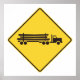 Un panneau indiquant qu'il y a des camions d'abattage. Ce design semble vraiment efficace sur cette affiche