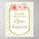 Nom suggestions affiche pour le baby shower en points blancs et or motif avec bordure or, rose rustique et pêche aquarelle fleurs et écriture de style manuscrit.