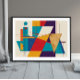 Célébration moderne de forme et d'équilibre, cette impression géométrique abstraite présente une interaction dynamique d'angles pointus, de lignes nettes et de blocs de couleurs audacieux dans des textures turquoises, jaune moutarde, rouge, bleu royal et doré. La composition minimaliste est rehaussée par des détails linéaires fins, ce qui la rend parfaite pour ajouter structure et sophistication aux maisons, studios ou bureaux contemporains.
