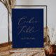 Ce panneau d'affichage à l'or délicat et au gluten marine sans cookie est parfait pour un mariage moderne. Le design minimaliste romantique présente une belle et élégante typographie de champagne jaune doré sur un arrière - plan bleu marine au look épuré et simple.