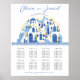 Poster Table Mariage Siège 8 Santorin Grèce Bleu