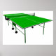 Une table de ping-pong verte et prête à jouer. Ce design semble vraiment efficace sur cette affiche