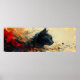 Peinture très détaillée du buste d'un chat noir dans un arrière - plan abstrait de jaune poussiéreux aux accents roux et rouges. Réalisé à l'aide d'algorithmes génératifs et Photoshop.