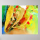 Couleurs Fiesta superposées avec des textures et des touches de peinture et de craie mélangées audacieuses. Matière alimentaire amusante...tacos... dans le style impressionniste de l'art pour un régal sauvage et merveilleux. Choisissez parmi une variété de tailles pour compléter votre espace de vie.