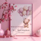 Cet adorable Poster en peluche à thème d'ours saura mettre un sourire sur le visage de vos invités ! Les couleurs mauve, marron et beige rendent ce design parfait pour un baby shower de fille. Personnalisez l'affiche avec vos détails et si vous voulez réorganiser le style et le placement du texte, veuillez appuyer sur le bouton "Cliquez pour customiser plus loin".