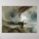 Il s’agit d’une reproduction de "Tempête de neige - Bateau à vapeur au large de la bouche d’un port" de 1842 par Joseph Mallord William Turner. Il avait soixante-sept ans quand il a créé ce tableau. Turner est né à Londres et a été envoyé vivre avec son oncle quand sa mère est devenue mentalement instable. Il commença à dessiner à l'âge de dix ans et son père les vendit dans son salon de coiffure et de perruque. À quatorze ans, il entra à l'Académie royale des arts, et à l'Académie elle-même l'année suivante quand il eut sa première exposition. Il se rend à Paris et en Suisse en 1802 et attire plusieurs amis et patrons dans ses années 20. Il est devenu plus excentrique avec l'âge et jamais marié. Il vécut avec son père pendant trente ans et, après la mort de son père en 1829, il fut sujet à la dépression. Il eut au moins deux liassons romantiques et mourut en 1851 à la maison de son amant pendant dix-huit ans. Ce tableau est une huile sur toile et mesure 35,98 par 48 pouces. Il se trouve dans la Tate Gallery de Londres.