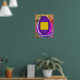 Deux symboles pour l'élément d'Ether et de la Terre plus des motifs colorés. Carré jaune et oeuf pourpre.