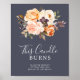 Ce signe mémorial de bougie violette brûlée en terre rustique est parfait pour un mariage d'automne. Le design élégant de ton de terre comporte des fleurs aquarelles rustiques en tons de terre cuite, cuivre, orange brûlée, pêche, rose blush et blanc crème avec un style bohème vintage.