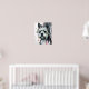 Terrier Portrait Pup, Whimsical, Gris, Noir et blanc, avec un pops de rose rouge orange et turquoise.