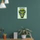 Éclairez votre espace grâce à cette affiche ludique avec une tête d'alien verte joyeuse, qui se broie abondamment avec ses dents. Son expression amicale et la légende "I Come in Peace...and a Little mischief" exsument un sentiment d'amusement et de méfait, ce qui en fait l'ajout parfait pour tous les amateurs de science-fiction ou ceux qui aiment rire.