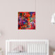 Des couleurs vives et des motifs complexes se mêlent, créant une scène abstraite remplie de formes tourbillonnantes et de motifs floraux. L'interaction de tons chauds et cool, ainsi que de couches texturées, ajoute profondeur et mouvement.