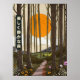 The Beautiful quiet forest, retro vintage worn Japanese travel poster of a beautiful woodland landscape