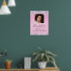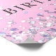 Pretty and girly sweet 16 birthday party welcome poster featuring her photo, sparkly holographic purple, pink and silver faux glitter confetti along the borders against a pink background and her name in a soft grey trendy script.