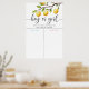 Une affiche amusante à avoir à votre soirée de révélation de genre! Illustration de citrons d'aquarelle sur une branche d'arbre avec un texte qui dit "garçon ou fille" en haut demandant aux invités de voter sur ce qu'ils pensent que le genre du bébé va être. Les clients peuvent voter pour le team boy ou team girl. Une activité ludique à faire à votre fête.