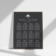 Dirigez les invités vers leurs tables à votre mariage à thème de voyage avec ce tableau de sièges unique qui comporte des codes d'aéroport en lieu et place de numéros de table. Un design simple en noir et blanc présente vos noms et codes d'aéroport en lettres de points de style électronique, avec vos noms d'hôtes indiqués ci-dessous. Une illustration d'icône d'avion en haut complète la conception.