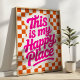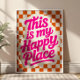 Bring instant joy and vibrant retro charm to any room with this “This Is My Happy Place” Uplifting Quote Checkered Poster. Featuring bold, playful typography set against a colorful pink-and-orange checkered background, this design radiates warmth and positivity. The groovy retro style adds a fun, nostalgic touch; perfect for brightening bedrooms, offices, studios, or any cozy corner that feels like your happy place. Cheerful, modern, and full of feel-good energy, it’s an easy way to add personality and positivity to your wall décor.