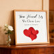 Time Found Us We Chose Love quote featuring layered red hearts on a clean white background. A romantic minimalist design perfect for couples, weddings, anniversaries, and Valentine’s Day. Elegant love quote wall art that celebrates commitment and connection.