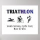 If you compete, train or are a fan of triathlon, then this triathlon slogan might be great for your next t-shirts, sweatshirt, training tank, or other venin. Triathlon. Swim Strong, Cycle Fast, Run to Win.