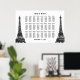 Ce tableau de sièges présente des silhouettes noires de la Tour Eiffel de Paris. Jusqu'à 24 tables avec jusqu'à 12 noms par table, pour un total de 288 noms d'invités. Cliquez sur "personnaliser" pour déplacer les tables, modifier les polices, etc.