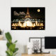 La vue classique du Palais de Chaillot la nuit. La Tour Eiffel baignée de lumières jaunes et encadrée par une lune massive et des fontaines spectaculaires. Un tirage à succès pour compléter n'importe quel décor maison à la perfection.