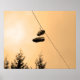 Une paire de baskets est suspendue à un fil téléphonique.