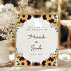 Ce tournesol rustique et signe d'accueil mariage rose est parfait pour une cérémonie de mariage à la campagne ou à la grange. Cette collection présente des tournesols aquarelles avec des roses bordeaux et de la végétation sauge. Des panneaux de bienvenue coordonnés complètent votre réception de mariage, dîner de répétition ou douche nuptiale. Faites de ce signe votre propre en incluant vos noms et la date de votre événement. Pour plus de personnalisation, cliquez sur le lien "customiser plus" et utilisez notre outil de conception pour modifier ce modèle.