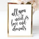 Un panneau de mariage élégant et à la pointe, présente le texte "Tout ce dont vous avez besoin est l'amour et les donuts" dans une police de caractères extravertie, la texture de brosse ajoute une sensation spontanée et ludique. La couleur de fond peut être personnalisée en fonction de vos besoins et préférences, veuillez me contacter si vous avez une demande spéciale.