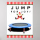 Décor de Noël avec le Père Noël sautant pour la joie sur un trampoline.