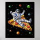 Ce drôle de design cosmique présente un astronaute de l'espace chevauchant une tranche de pizza.