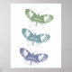 trois papillons dans de jolies nuances de bleu, sauge et violet simple chic