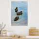 Photo de trois canards sur un étang.