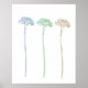 trois fleurs de dandelion en bleu, chaux et poach poster simple