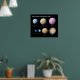 Illustration représentant les trois planètes géantes orbitant l'étoile Kepler 51 semblable au Soleil par rapport à certaines planètes de notre système solaire. Ces planètes sont toutes à peu près de la taille de Jupiter mais une très petite fraction de sa masse. Cela signifie que les planètes ont une densité extraordinairement basse, plus semblable à celle de la mousse de styrène que de la roche ou de l'eau. Les planètes se sont peut-être formées beaucoup plus loin de leur étoile et ont migré vers l'intérieur. Maintenant, leur atmosphère d'hydrogène et d'hélium gonflés saignent dans l'espace. En fin de compte, des planètes beaucoup plus petites pourraient être laissées pour compte. Les couleurs de cette illustration sont imaginaires.