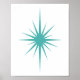 Poster Turquoise Bleu Starburst atomique milieu du siècle