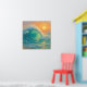 Artwork of a turquoise wave in a pastel painting style with a sun in the background. This art captures the precise moment a towering wave crests and curls into a turquoise tunnel, all bathed in the fiery glow of the setting or rising sun. It's a vibrant piece that brings the majesty of the open sea into your home. The sea glows in brilliant shades of teal, while sunlight melts across the surface in soft amber hues, a harmony of movement and light. This artwork is ideal for a living room, a surfer's inspired space, a dynamic office, or any area that needs a burst of color. If you are captivated by the raw beauty of the sea and crave artwork with saturated, contrasting color, this is a must-have. This art can be customized, printed, and or downloaded.
