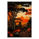 Plongez dans la magie d'un coucher de soleil tropical. Couleurs vives, silhouettes mystérieuses et promesse d'une nuit exotique. Une oeuvre qui évoque le paradis.